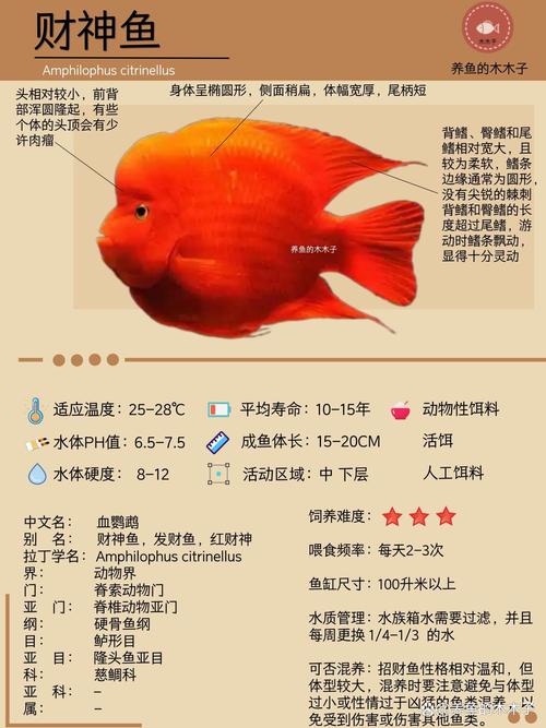 财神鱼,学名血鹦鹉,这种鱼天生没有繁殖能力,是人工杂交的产物、在风水逻辑中,这种“逆天而行”产生的生灵,自带一股强烈的阳刚之气、红色五行属火,鱼游水中,这本身就是一种“水火既济”的格局。
