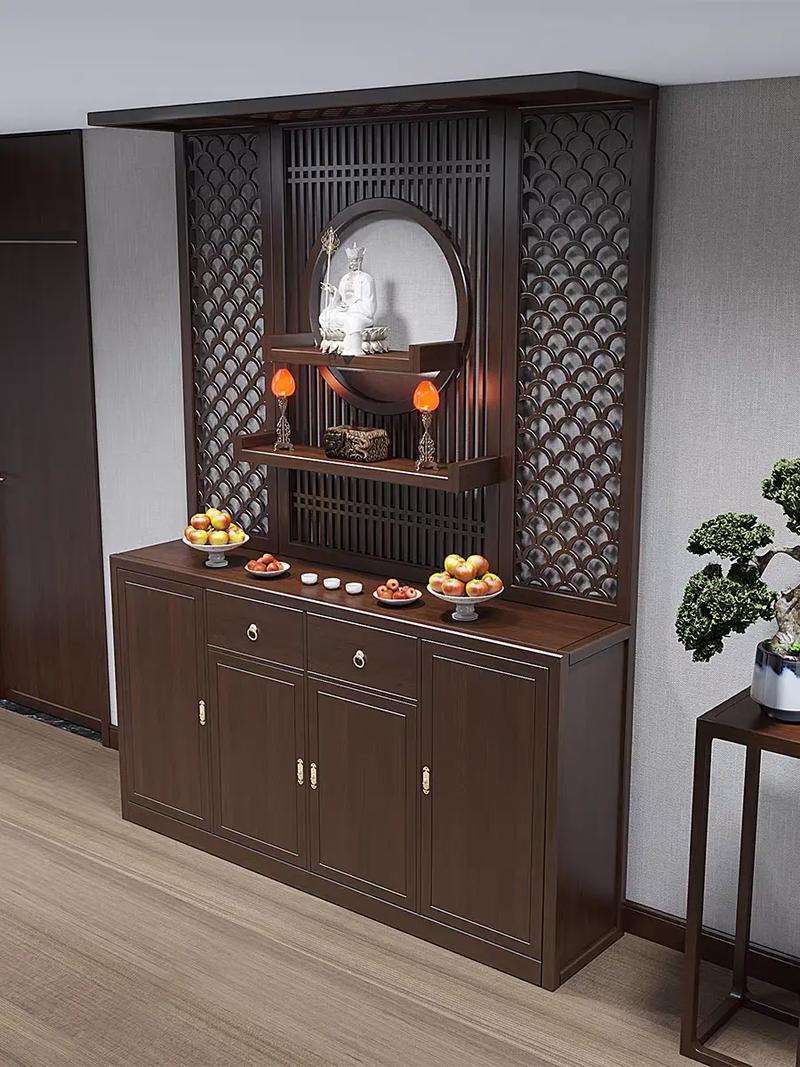 柜子的深度与宽度亦不能马虎、宽度宜选在68厘米(兴旺)、88厘米(宝库)等数字、深度的考量则要结合香炉、水杯及供果盘的摆放、若柜子深度不足,供品显得拥挤,不仅在视觉上缺乏美感,更在风水上形成了“局促不安”的格局,预示着财运难伸。