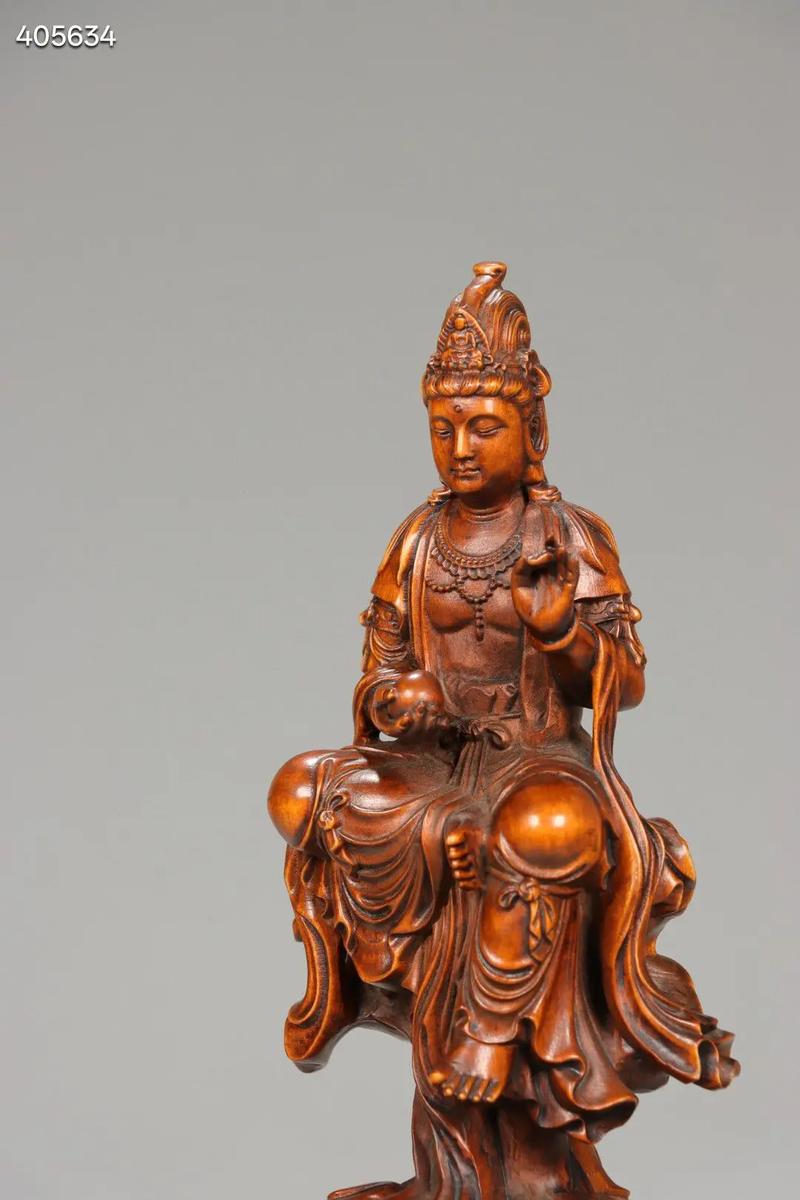 黄杨木观音质地坚韧、色泽金黄,随着岁月的流逝会逐渐转为红棕色、在风水认知中,黄杨木被誉为“木中象牙”,其生长极其缓慢,蕴含了极强的“木气”精华、在2026年这一火性极强的年份,黄杨木观音能够以柔克刚,起到平定心神、平衡五行的作用、它寓意着财富的稳步积累,正如木纹的细腻生发,不急不躁。