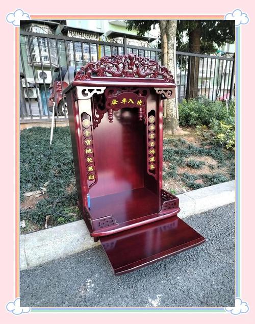 柜子两侧可雕刻楹联,如“福而有德千家敬,正则为神万世尊”、文字的力量是巨大的,它能持续释放正向的心理暗示、雕刻的图案应选择松鹤长春、八仙过海或麒麟送子等吉祥图案,切忌出现狰狞的猛兽。