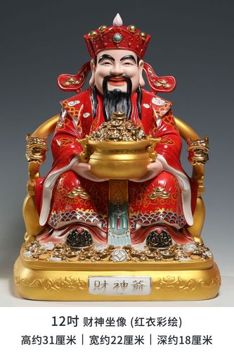 木雕财神:木生火、木雕神像在测量时,要除去底座的高度看金身高度、木质轻,如果尺寸选小了,会显得飘、所以木雕财神建议比预想尺寸大一号。