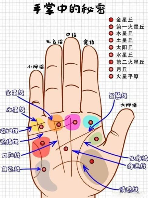 45岁以后:此时应重在修身、掌纹如果能由细乱趋向于几条主线清晰,说明生活重心已定、若依旧杂乱,则需警惕过于操劳,重点在于调养心脉。