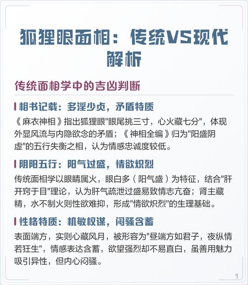 由于狐狸眼在视觉上会让人产生被“审视”的感觉,所以在使用眼神交流时,若能配合自然的微笑,可以极大减弱他人的敌意、在相学研究中,这被称为“化煞为用”、当一个人能意识到自己眼神的攻击力并主动调节时,他们的运势就会出现质的飞跃。