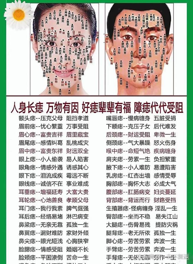 面相学作为中国传统相术的重要组成部分,讲究的是“内相其心,外相其形”、脸上的痦子,也就是我们常说的“痣”,被视为山川之草木,地灵之产物、山美则草木茂盛,山恶则草木凋零、人脸上的痣不仅是皮肤色素的堆积,更是五脏六腑之气在面部的显化、随着年龄增长或外界环境变化,这些痣的颜色、大小、形状若发生变动,自然会牵动一个人的流年气运。
