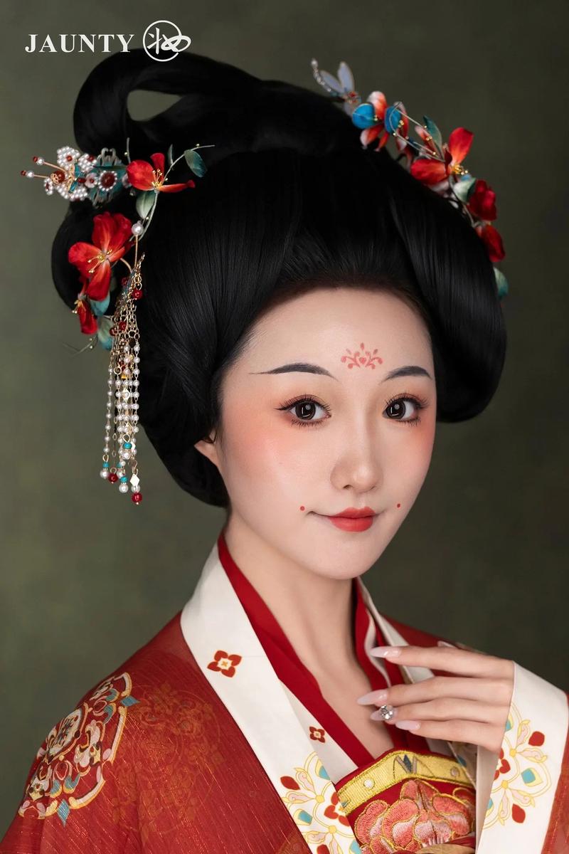 盛世之下,人的生命状态是向外迸发的、浓密的眉毛象征着强烈的生命意志与社交能力、唐朝女性甚至会画出粗厚的阔眉,这种在现代看来略显夸张的妆容,实际上在相学上起到了“补运”的作用、粗眉代表英气,代表在社会活动中不让须眉的果敢。