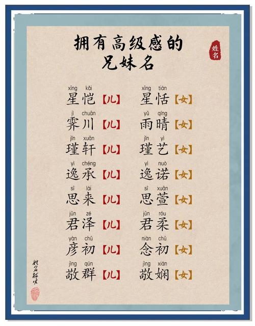 名字不仅是看的,更是听的、兄妹两人的名字在呼喊时,应当有一种韵律感,像是一首小诗的上下句。