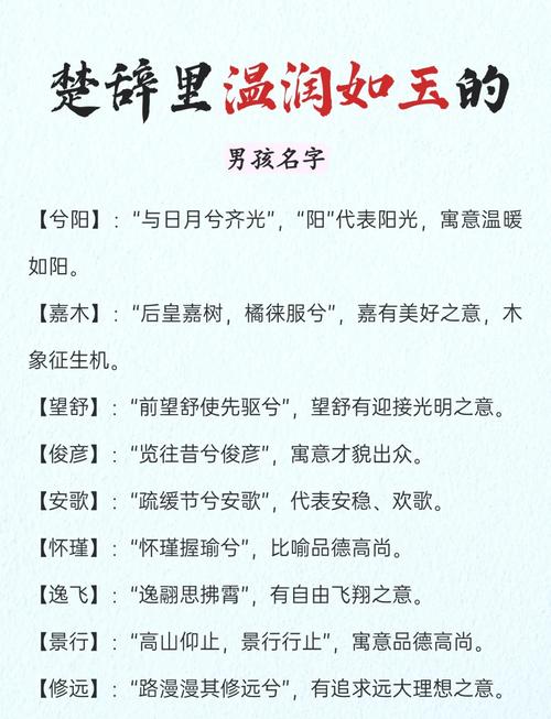 每一个鼠年出生的男孩,都是这个世界的精灵、用《楚辞》为他们命名,是把浪漫主义的种子种在现实主义的土壤里、这种结合,既有风水上的科学权衡,又有文学上的优雅意境、这是送给孩子最好的开场白。