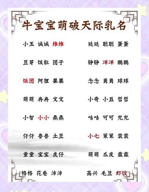 乳名通常不需要像大名那样厚重,更注重亲昵感和避凶趋吉、对于2026年的牛宝宝,乳名可以从以下几个维度展开: