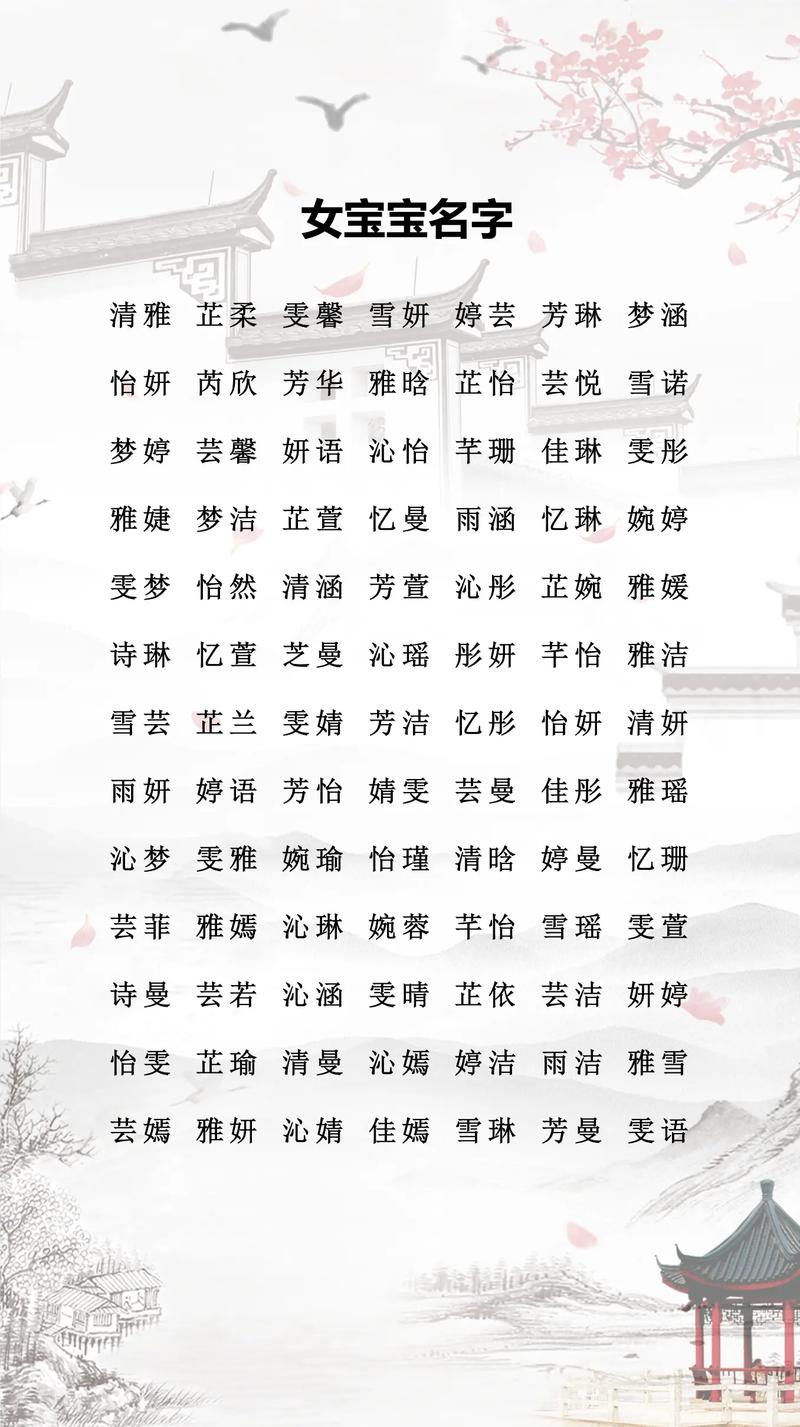 【雅楠】:“雅”指高尚;“楠”为名贵木材、木生火,寓意孩子身份尊贵,气质典雅。