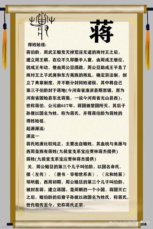“蒋”字繁体为“蔣”,部首为草字头,五行属木,带有草木繁茂之象、作为姓氏,其内在能量倾向于承袭与基础稳固。