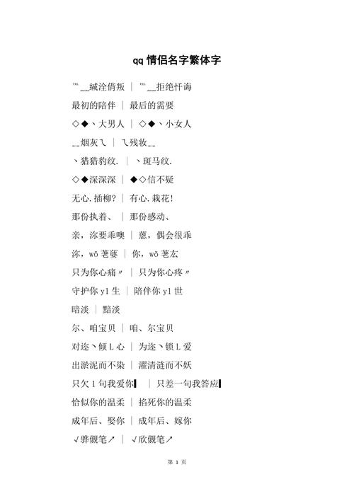 2026年繁体情侣名字配对 2026年情侣配对名字