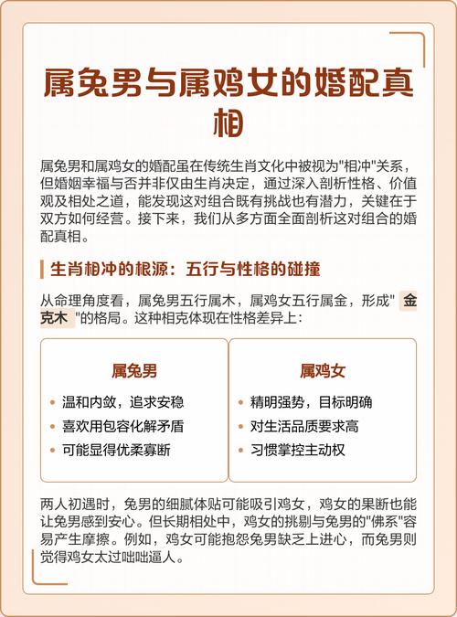 卯兔与酉鸡,在地支之中,属六冲之一,谓之卯酉相冲、此冲,源于五行之根本与方位之对立、卯兔,五行属木,位居正东;酉鸡,五行属金,位居正西、金克木,是天性使然,正东与正西,背道而驰,永不相交、故而,男属兔与女属鸡的婚配,在命理传统中,常被视为挑战重重,荆棘满途。