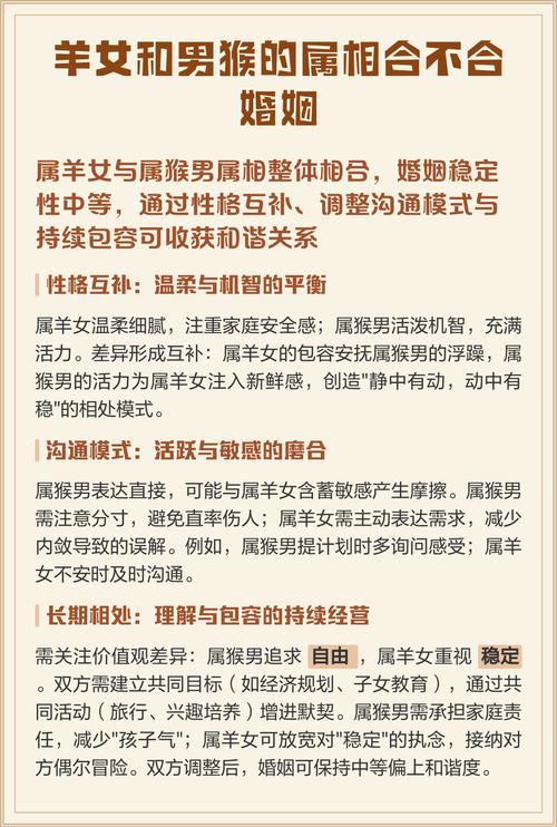 在家庭的经济基石上,羊的稳健与猴的机变为一对绝佳的互补组合,前提是运用得当、属羊之人天性谨慎,善于储蓄和规划,能为家庭构建坚实的财务防线、属猴之人则眼光独到,敢于投资,能捕捉到常人不易发现的机会。