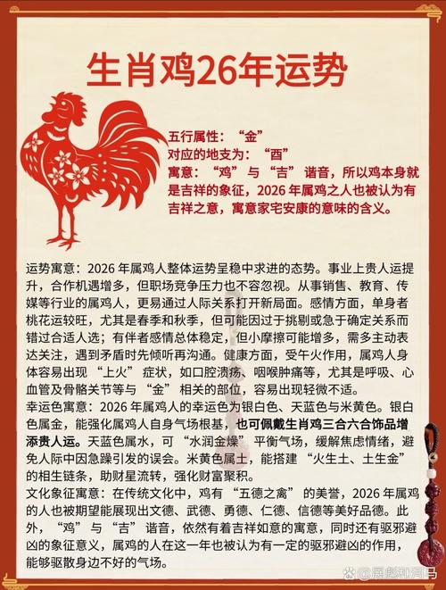 2026年丙午马年,属鸡男性的整体运势呈现出一种“先抑后扬、火中取金”的复杂格局、从五行命理来看,属鸡的方位在西方,五行属金(酉金),而2026年是丙午年,天干丙火,地支午火,岁干地支皆为旺火、火能克金,这意味着属鸡男在这一年将面临不小的外部压力与环境挑战、这种克制并非全然是坏事,古语云“金不炼不成器”,2026年正是属鸡男通过磨炼达成自我蜕变的关键年份。