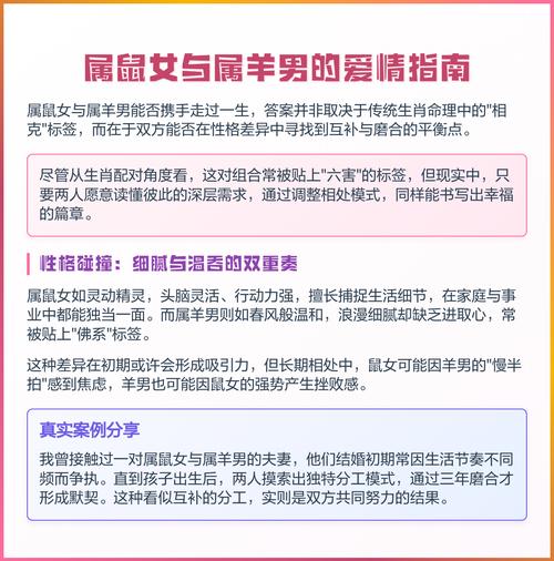 在这篇长论中,我们剖析了性格、五行、流年、风水、心理等多个维度、属鼠与属羊的爱情,确实比常人要辛苦一些、但这种辛苦换来的甘甜,也往往比常人更深沉、属鼠人的机智与属羊人的温柔,是这个世界上最难得的组合,前提是,你们能熬过那段相爱相杀的岁月。