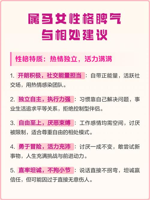 在命理学中,我们讲究“平衡”二字、属马女性的“烈”如果能遇到合适的“容器”,比如一个包容心极强的伴侣,或者一个能够容纳其天马行空想法的职业平台,这种性格就会转化为极大的创造力、属马女性的“火”不仅仅是燃烧,更是照亮、她们往往是朋友圈里的核心,是家庭里的顶梁柱,是危机时刻那个最清醒、最果断的人。