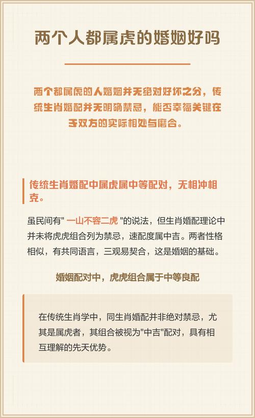 外界常说“两个属虎的不长久”,这种心理暗示本身就是一种负能量、双虎夫妻要建立强大的心理防线,不被这些陈旧的标签所左右。