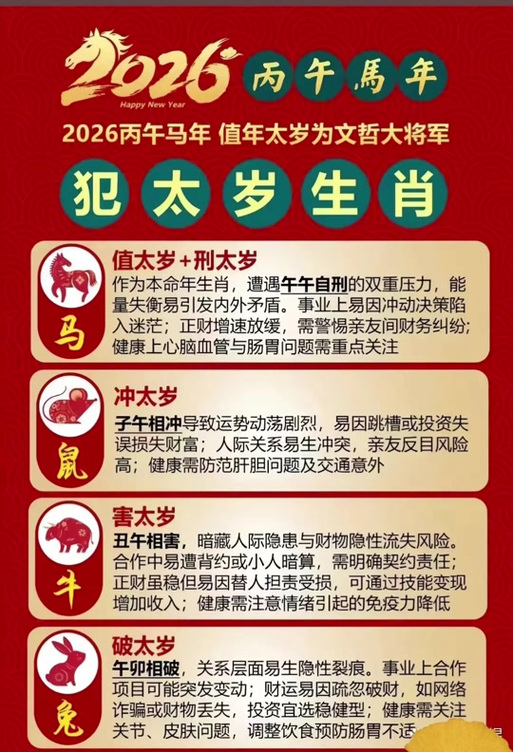 虽然属马旺属虎,但在2026年这个高能量年份,由于三合火局的力量过于庞大,属虎的人也要注意火旺伤金、伤水的风险。