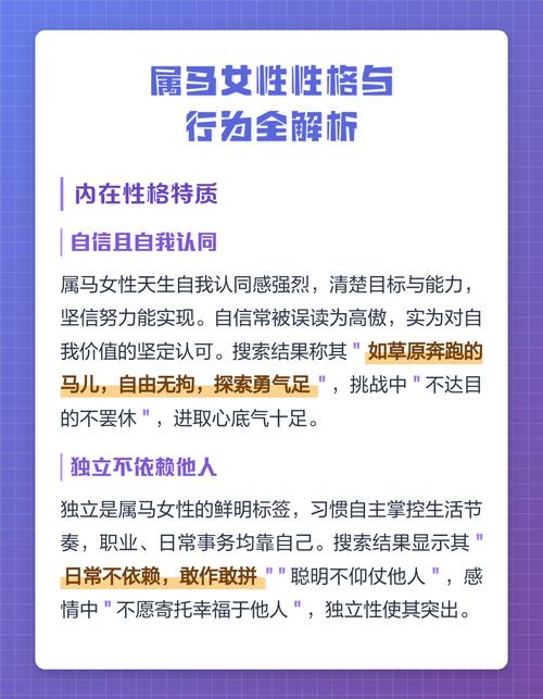 属马女子的“不听话”,并非源于叛逆或刻意对抗,而是其独立精神与生俱来的外在表现、她们的内心深处,有一片属于自己的精神疆域,神圣而不可侵犯、任何试图用强硬手段或繁琐规矩将其束缚的企图,都会激起她们本能的挣脱、她们服从的,从来不是命令,而是道理与尊重、倘若你能够以理服人,让她从心底里认同你的见解,她会成为最忠诚的伙伴,与你并驾齐驱、可若是想用“你应该”或“你必须”这样的口吻来驾驭她,那么她展现出的,只会是让你望尘莫及的决绝背影。