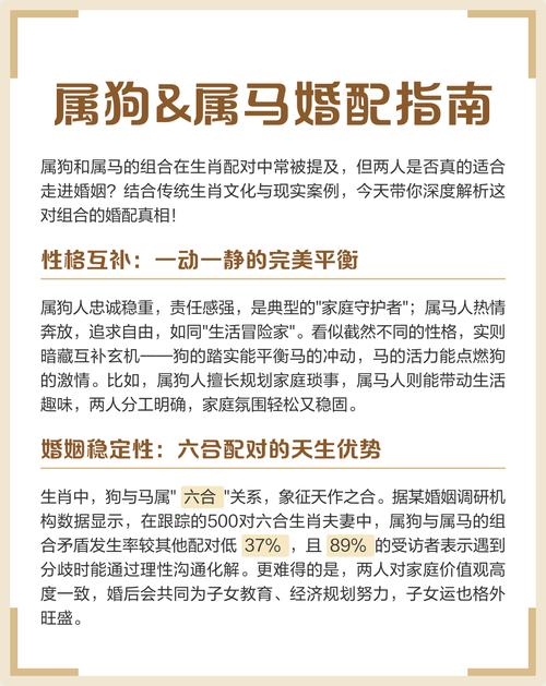 特别提及2026丙午马年,此年火势极旺,属马人运势如虹,机遇颇多,但也容易变得更加冲动和自我、这对于马狗婚姻既是考验也是转机、属马人应牢记,此刻的成功离不开属狗伴侣多年来的稳定支持、应主动将决策权与伴侣分享,尤其是在重大财务决策上,认真听取属狗人的意见、这不仅是对伴侣的尊重,更是智慧之举,戌狗的谨慎能为午马的激进踩下必要的刹车,避免因运势过旺而导致的投资失误、若能平稳度过此年,将收获的财富交由属狗人打理,夫妻间的信任与情感将迈上一个新的台阶,财运与婚姻的根基将变得前所未有的坚固。