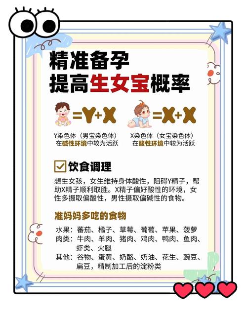 生男生女的科学核心在于Y染色体精子与X染色体精子的竞争、Y精子在碱性环境中活跃度更高、生存时间更长、2026年备孕男孩,夫妻双方至少提前三个月进入饮食调整期。