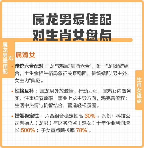 属鸡、属猴的配偶本质上是为龙男“镀金”、她们的存在能提升龙男的社会阶层与精神境界、而属鼠、属猪的配偶则是为龙男“注水”,让这片沙土变得肥沃,可以承载更多的家族福报。