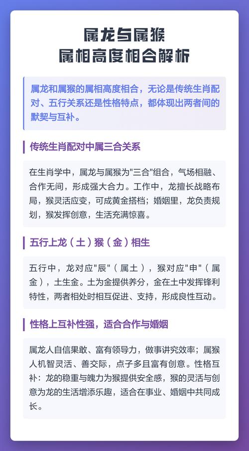 要让龙猴之恋长久,属龙者必须学会放下身段,给予猴足够的信任和空间,理解他们的自由天性并非不爱,而是一种生活方式、属猴者则需要收敛心性,让龙感受到明确的归属感和安全感,用智慧而非小聪明来经营这段关系,在关键问题上给予龙应有的尊重和支持、当龙愿意为猴停下追逐世界的脚步,猴也愿意为龙画地为牢时,他们的结合才能真正爆发出巨大的能量,成为彼此生命中最耀眼的光芒。
