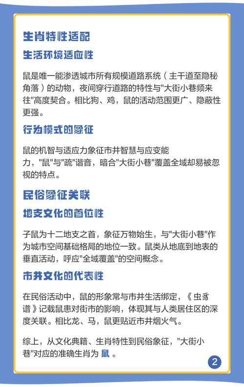 谜题“大街小巷”,所指生肖为何?此问看似寻常,实则内藏玄机,其答案直指十二生肖之首——子鼠。