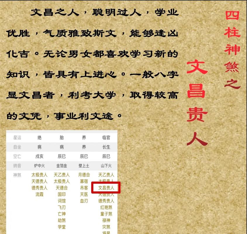 出现在年柱,往往代表祖上有文化底蕴,或者幼年时期受过良好的启蒙教育、年柱是根,根上有文昌,这孩子从小就比同龄人显得早熟、懂事。