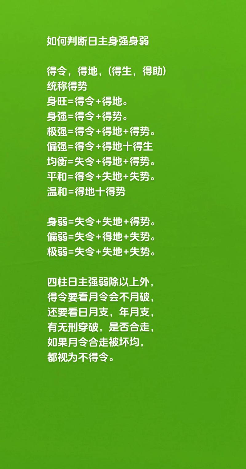 得令是判定旺弱的首要因素、日干生于对应季节的月份,便是得令。