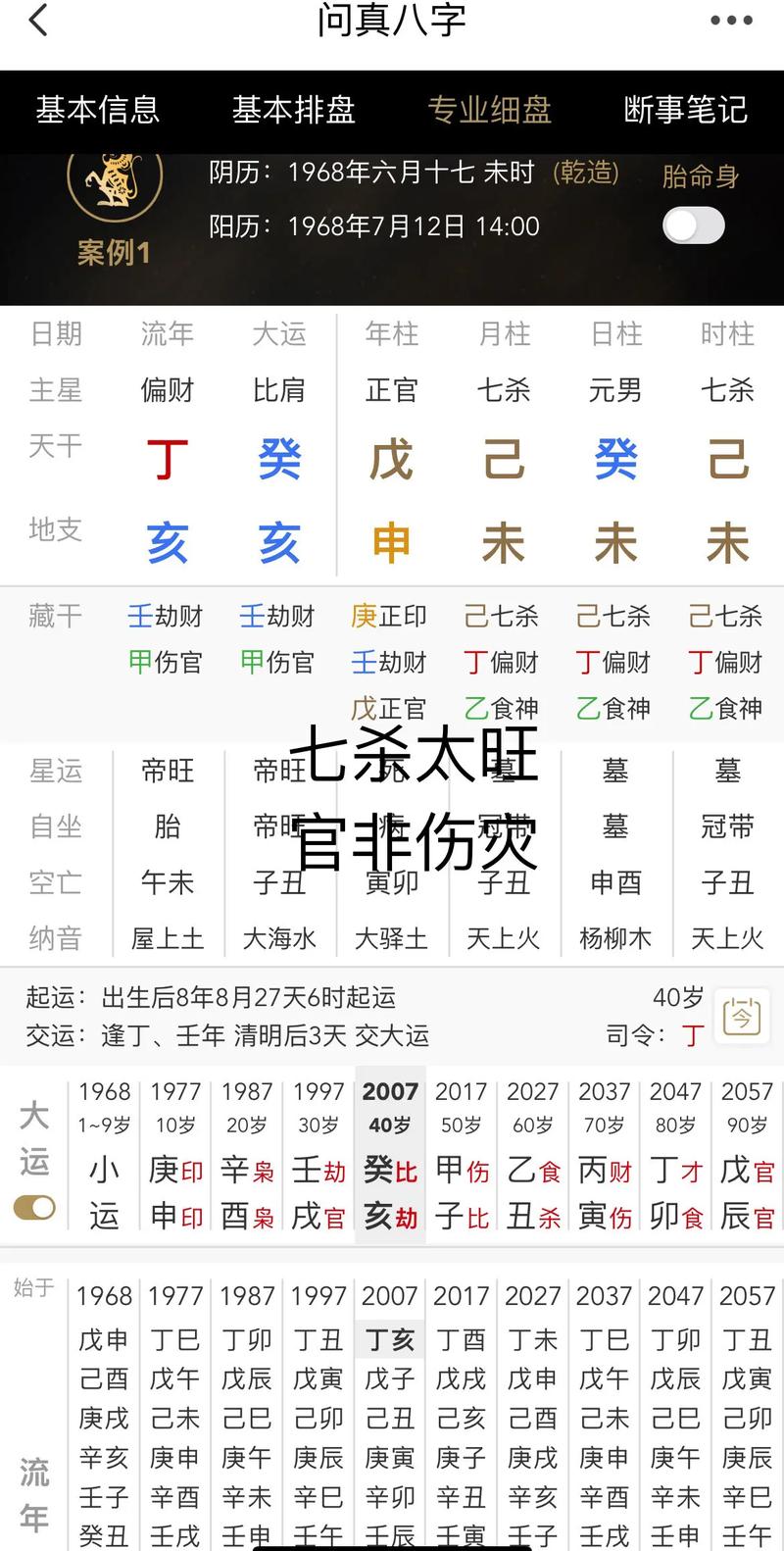 七杀代表暴力、意外、严苛的环境、若八字身弱官杀旺,且无印星转化或食伤制化,此人一生多灾多难,易遭人祸、意外撞击或病痛折磨、流年若再行官杀运,或是杀星入墓之年,灾祸往往不期而至。