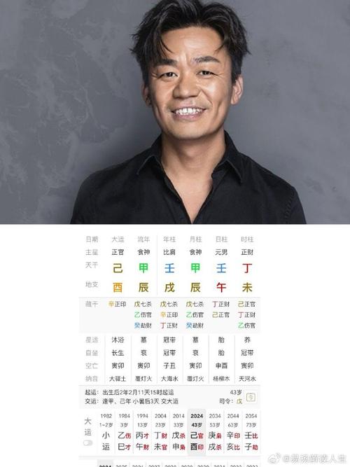 目前王宝强正处于甲子大运中(2023年至2032年)、这一步大运是典型的“伤官坐劫财”、甲木伤官再次加强,说明他在艺术创作上会有更大的野心,不甘于只做演员,导演梦、幕后操盘手的身份会更加强化、但子水是他的羊刃之地,这十年走得并不轻松、子辰半合水局,水多土流,他的名声虽然依然宏大,但伴随而来的口舌是非、利益纠纷会比以往任何时候都多。