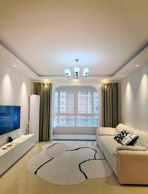 既然客厅缺少窗外的风景和光线,墙面和地面的颜色就必须起到“提亮”和“扩容”的作用、在这样的客厅里,严禁使用深灰色、深棕色或大面积的冷色调。