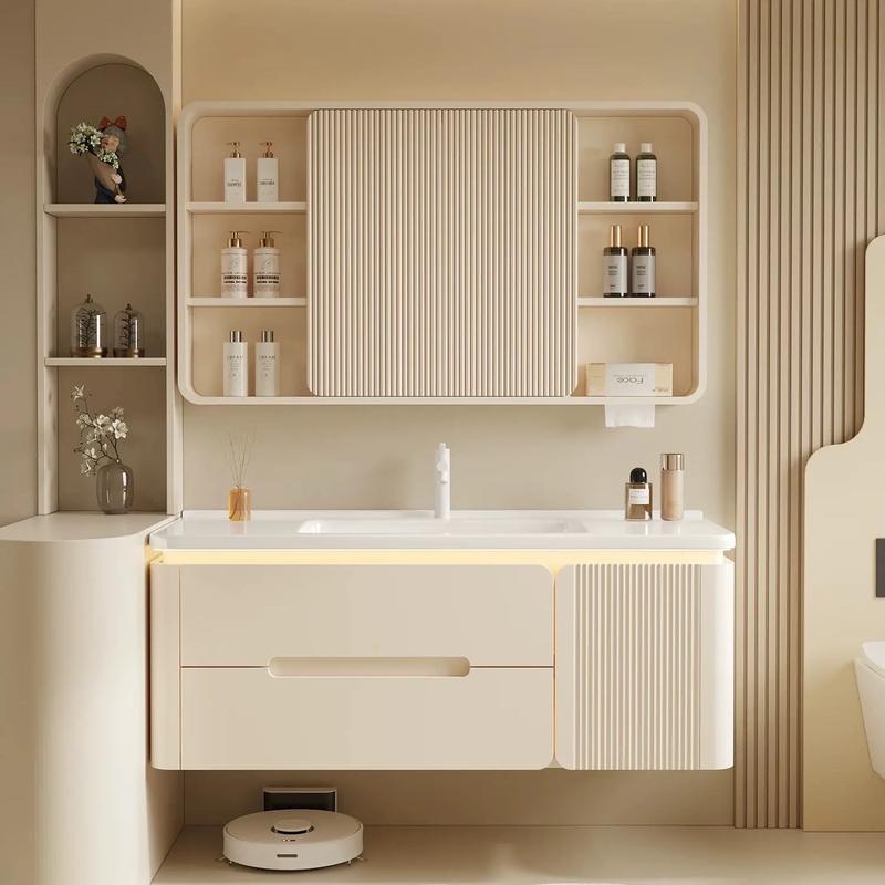 洗手台下的柜子(浴室柜)、现代装修多采用悬挂式浴室柜,这在风水上是非常好的,因为它让地面空气对流,避免了卫生间底部的湿气堆积,这被称为“气脉通畅”、柜体内不要存放旧衣服、破损物品或过期的化学清洁剂、这些东西会产生负面磁场,直接影响到上方洗手盆的能量纯度。