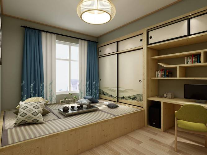 很多家庭将榻榻米卧室兼做书房或茶室,这从风水角度看是“动静混杂”、卧室主静,书房主动、如果榻榻米上既摆放电脑桌,又放置床垫,会导致能量场紊乱。