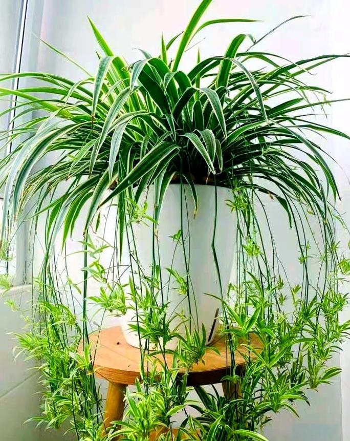 但要注意,卧室植物不宜大,不宜多、吊兰叶片下垂,具有阴柔之美,能够中和卧室内硬朗的家具线条、切记不要将吊兰正对着床头,以免植物的阴气影响人的气场平衡。