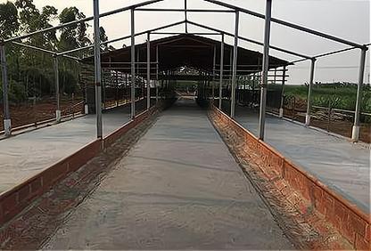 顶棚忌用金属亮面材料、烈日直射产生“光煞”,折射入眼,影响牛只视力与性情、应选用深色、吸光、隔热性能强的瓦片。