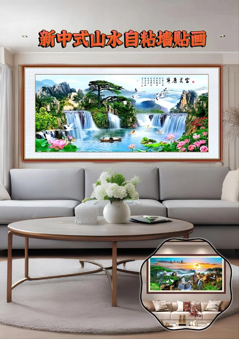 2026年的挂法讲究“水不外流”、画中的瀑布、流水的流向必须指向屋内,尤其是指向餐厅或主卧方向,切忌流向大门或阳台,否则视为“漏财”。