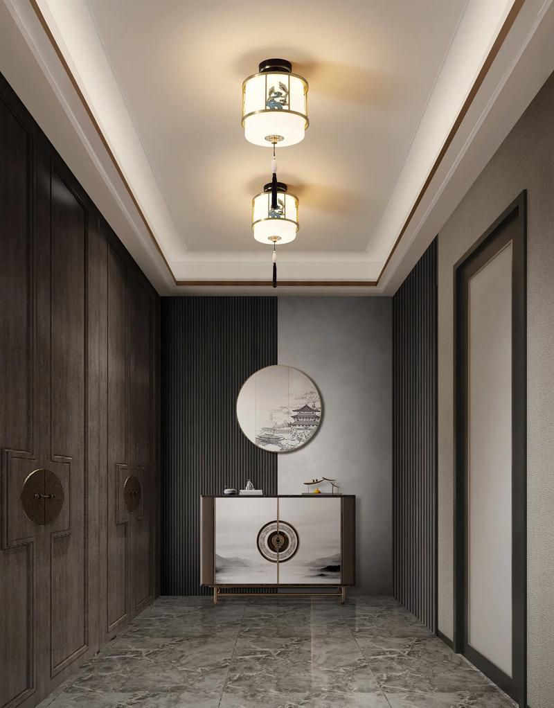 若是天花板较窄,只安装一盏主灯,则应确保这盏灯位于玄关的正中央、这在风水中称为“中宫定心灯”,能起到汇聚明堂正气的作用、如果入户处有狭长的走廊,灯光应均匀分布,切忌忽明忽暗,以免形成“阴阳路”,导致家运起伏不定。