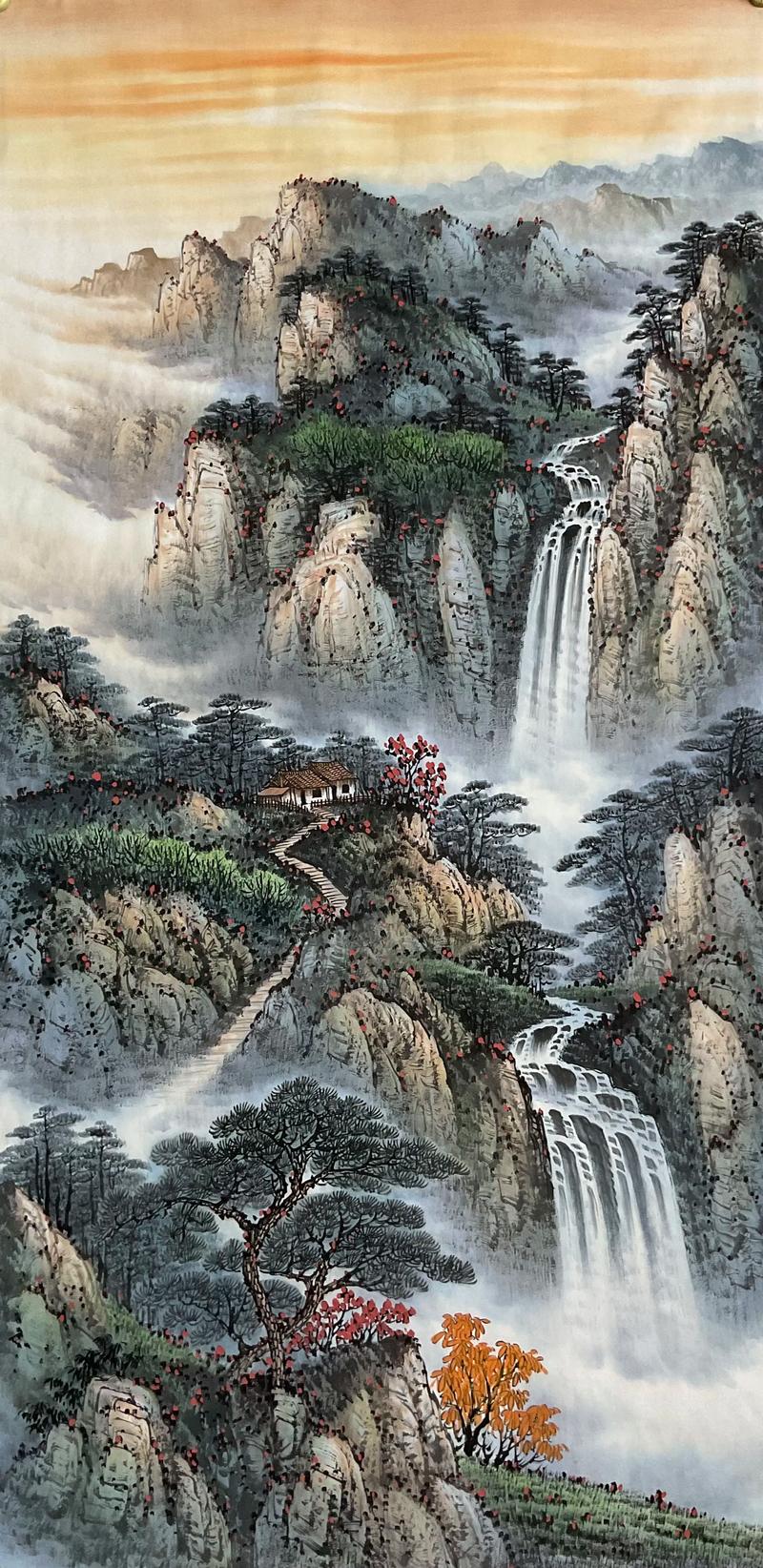 画中的云雾也大有讲究、云雾缭绕象征着“祥云瑞气”,能起到藏风聚气的作用,让山水画的空间感更加深远、但云雾不能遮挡主峰,主峰必须清晰可见,这代表着主人的意志坚定,目标明确、如果云遮雾罩看不清山头,则寓意前途迷茫,容易在重大的抉择上迷失方向。