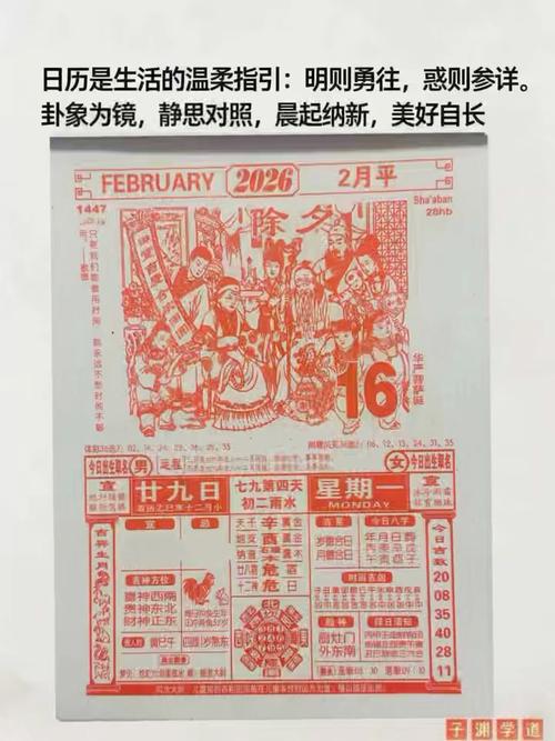 探寻2026年2月16日之吉凶,需拨开公历的表象,深入其背后承载的时空密码、此日,于公历而言,是2026年寻常的星期一;然以华夏传统历法观之,则为丙午马年的正月三十,一个新春余韵未尽,万物待苏之日、欲断其吉凶,不可一言以蔽之,需从黄历、五行、生肖等多个维度细细剖析。
