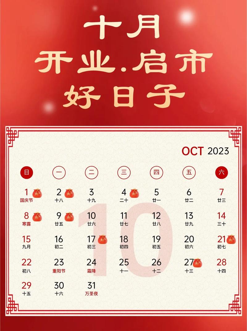十月之中,亦有不宜开张的日子,如10月11日(乙巳日,收日),“收日”有收敛、关闭之意,不利于开创性事务、又如10月23日(丁巳日,破日),“破日”为大凶之日,诸事不宜,尤其忌讳开张,以免根基不稳,事倍功半。
