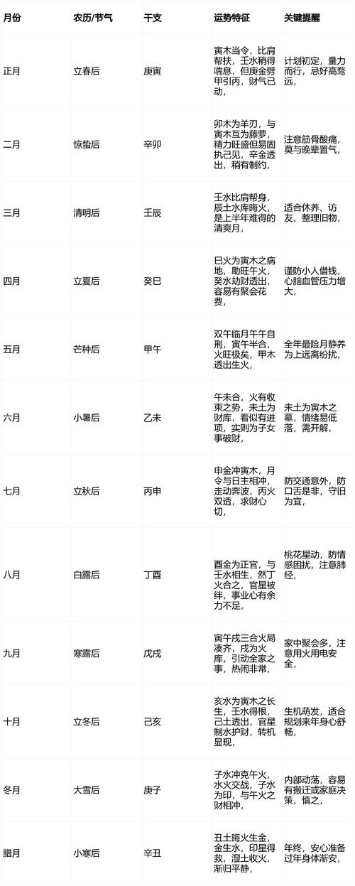 虽然3月有很多吉日,但有些通用性的禁忌属虎人不得不防、在2026年这个赤狗星入命的年份(丙午年俗称赤兔或赤马,火性烈),属虎人要警惕“火多木焚”。