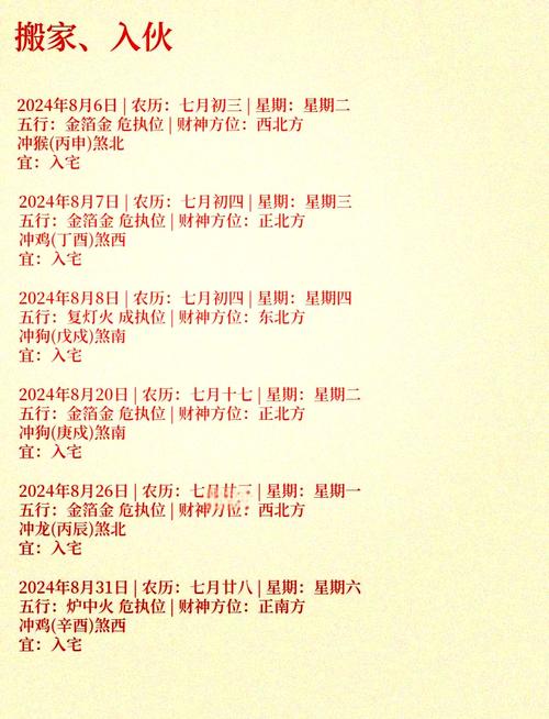 2026年八月搬家入宅吉日详览