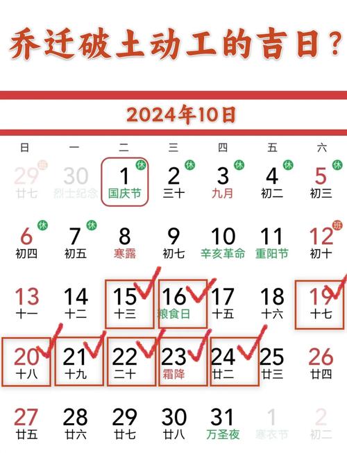 避开生肖冲煞: 上述吉日均已标明所冲的生肖、所谓“冲”,即气场不合,易生变故、凡是日辰地支与家主或主要居住成员的生肖相冲,此日便不可用、例如10月8日为申日,冲克寅虎,那么家中若有属虎之人,便不宜在此日动工,应另择他日、若无法避开,家中其他成员亦可在动工仪式时暂避。