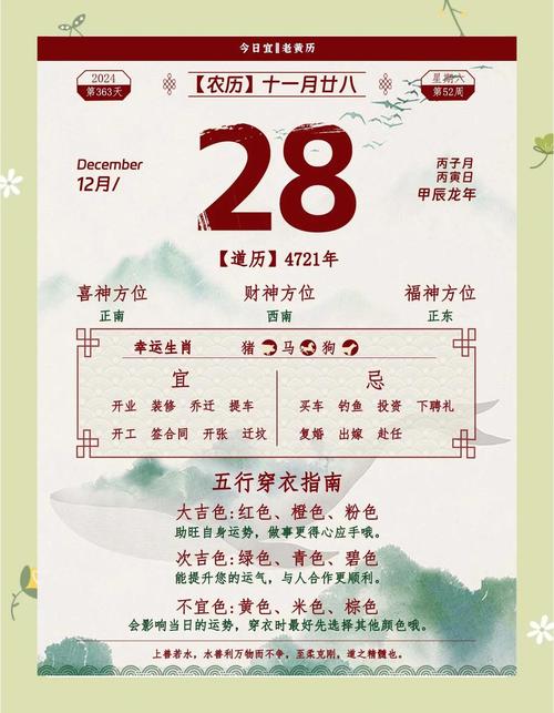 探究2026年12月28日这一天,是否可称之为黄道吉日,需要细致地翻阅历书,并结合天干地支、五行生克、建除十二神等多重体系来综合判断、此日并非一个简单的日期数字,它在中华传统择日学中,拥有其独特的时空气场与能量属性。