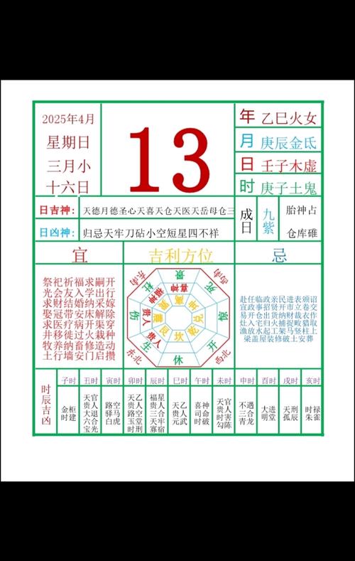 洋历二零二六年四月十三 黄道吉日详解