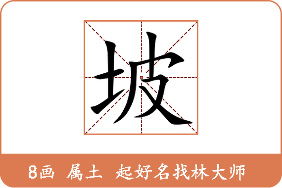 在姓名学(三才五格)的计算中,笔画数往往决定了该字对命局的诱导力、《康熙字典》中,“坡”字的笔画数为8画(土3画,皮5画)、8画在数理诱导中,属于“八卦之数”,代表着意志坚强、功成名就的意象。