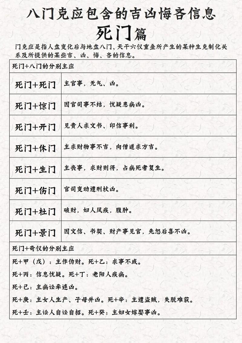 在商业竞争中,如果对手的宫位出现这个组合,说明其内部财务已经枯竭,且伴有严重的虚假信息、杜门在此处代表被查封的办公场所。