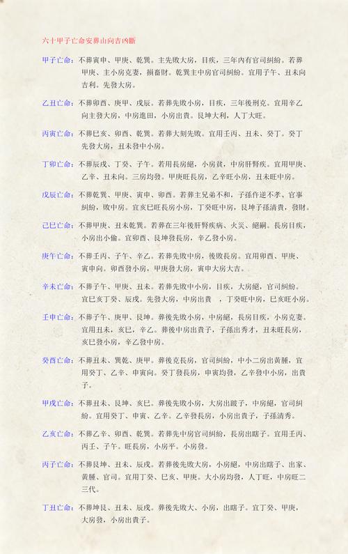 二、 六十甲子仙命安葬吉凶细论